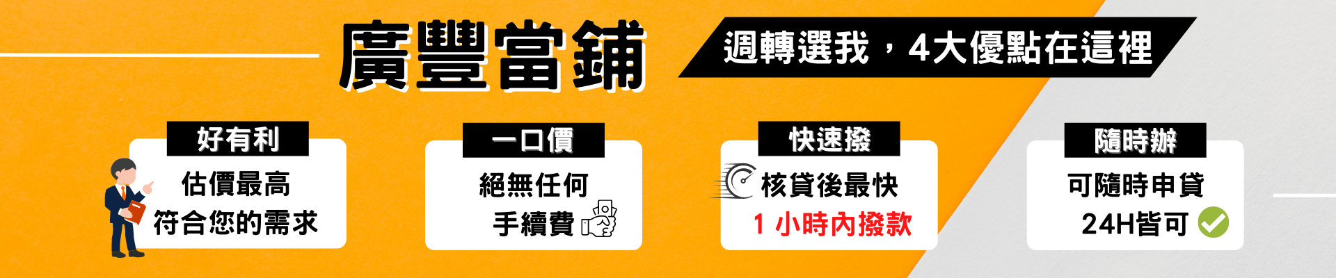 ※ 桃園借錢 | 廣豐當鋪:可代辦二胎、可支客票還款、黃金、鑽石、手錶、汽機車、現金周轉、免費諮詢 ※